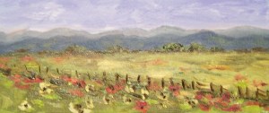 Miniature Summer Flowers is an oil on canvas panel measuring 3″x7″ and is available for $45.