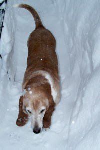 Truman is wonderful. I live with Homer, the basset hound. They are so funny. My theory is, since they have very short legs and they have to squat… they do not like to go out in the snow. 🙂