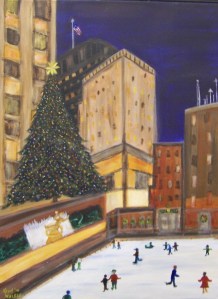 Now back to art. Rockefeller Plaza is an acrylic on canvas measuring 24″x18″. This painting began as a lesson for a private student who was interested in doing a “representational abstract” of this view. We had fun working on it. As you can see it was a Christmas view. It is SOLD!