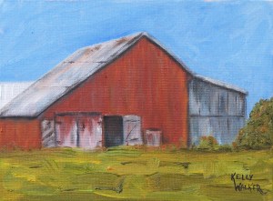 The Barn is an oil on canvas panel measuring 6″x8″ and is available for $125.