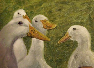 Gaggle of Geese is an oil on canvas panel measuring 6″x8″ and is available by emailing me at kwalker@doubledogdesigns.com .