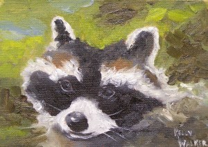 Randy Raccoon is an oil on canvas panel measuring 5″x7″ and is available for $75. I painted this piece as a demonstration for Thursday Art Class. Yes, we now have art class on Thursdays as well as Wednesday. So if you have been wanting to learn to paint and Wednesday was not a good day for you, contact me to sign up for Thursday class!