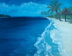 Beach Hut is an acrylic on canvas panel measuring 11″x14″ and is available for $165.