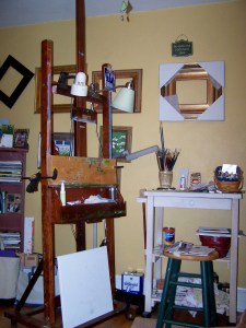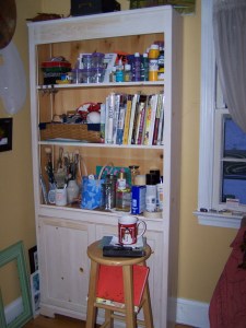 And it takes a lot of “stuff” not only for painting, but also for framing, matting, hanging, promoting, marketing, etc. An artist’s studio or work area often is filled with materials and “stuff”!