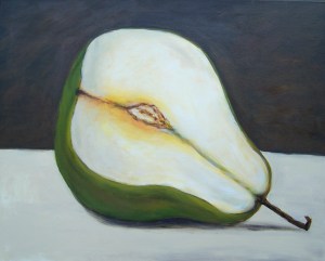 Half a Pear is an acrylic on canvas measuring 24″x30″ and is available for $295.