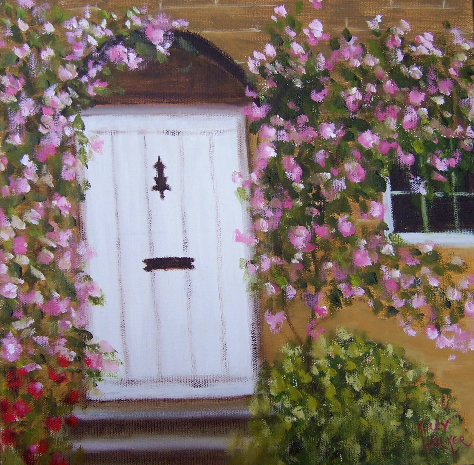 Roses by the Door is an oil on canvas measuring 12″x12″ and is available for $195 framed. This is the second in the House and Garden series of paintings. (Click here to see the first one.)