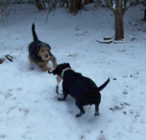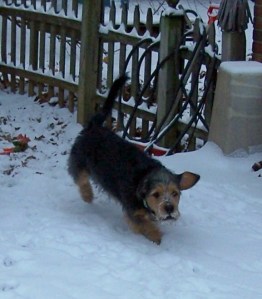 Lincoln loved the snow and ran around in circles on the deck until he finally tired out.