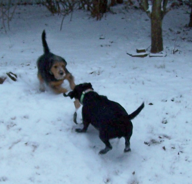 Jed convinced him that tug-of-war was just as much fun as running in circles.