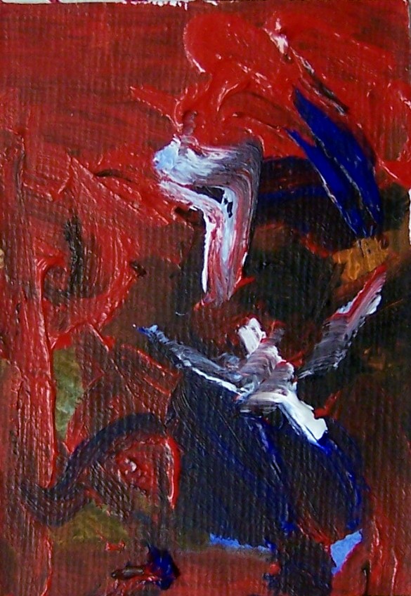 Mini Abstract in Red is an acrylic on paper board measuring 3″x2″ and is available for $15.