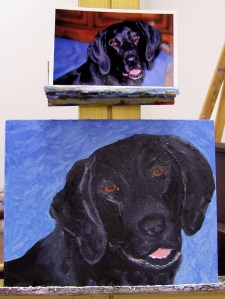 I may decide to tweak a few things after it dries a little but for the most part he’s done. Jed is an oil on canvas panel measuring 8″x10″. He’s not for sale. 🙂 He will go on my wall at home joining portraits of Truman, Jeffie, Boo and Rosie. Next I’ll have to work on Lincoln.