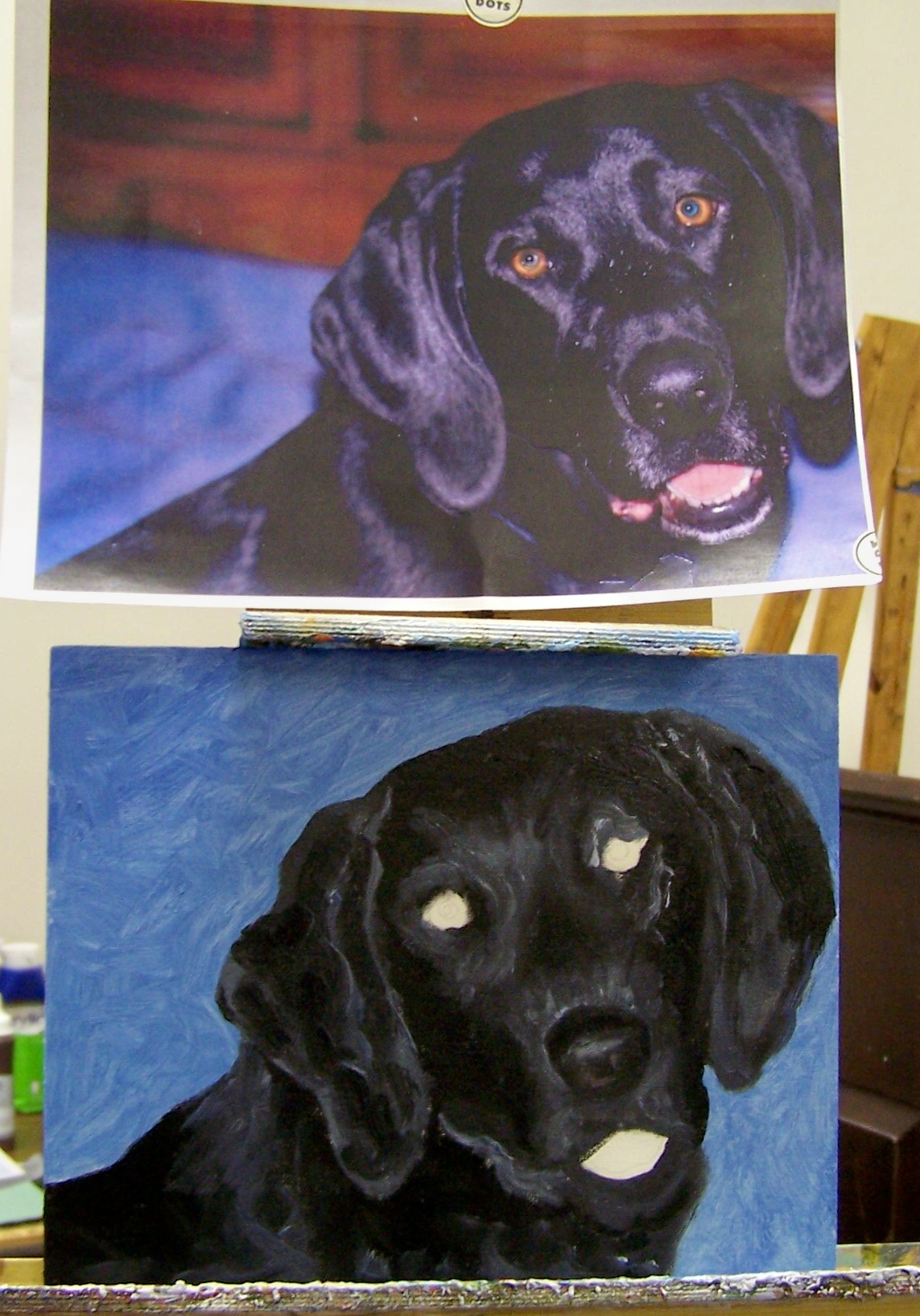 I started this painting of Jed last Wednesday night in Adult Art Class. I used a photo by Sandra Patterson as my reference photo. I just love this look.