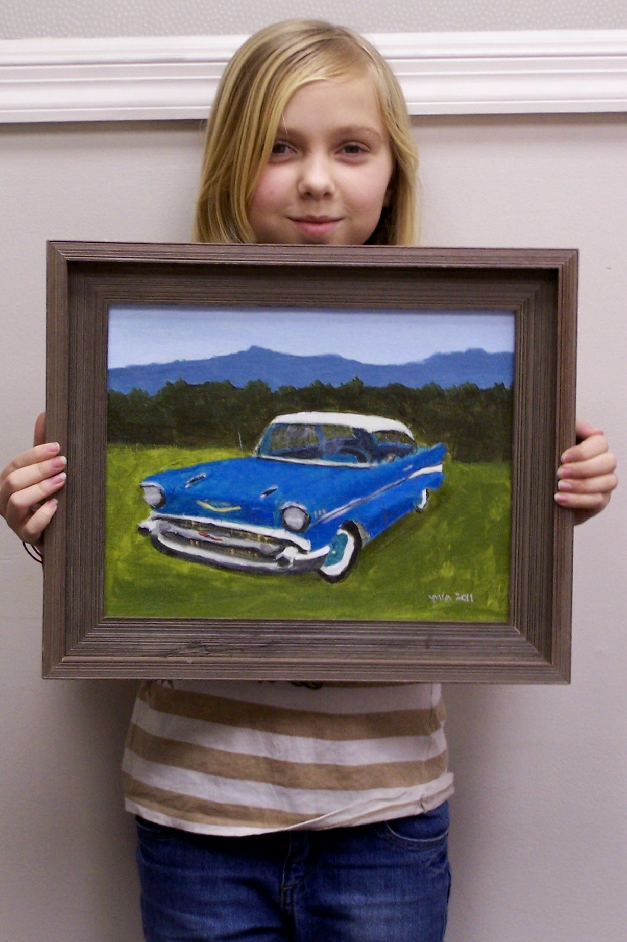 Mia with The Chevy. She made this special gift for her dad in a private lesson yesterday afternoon. Didn’t she do a fantastic job?