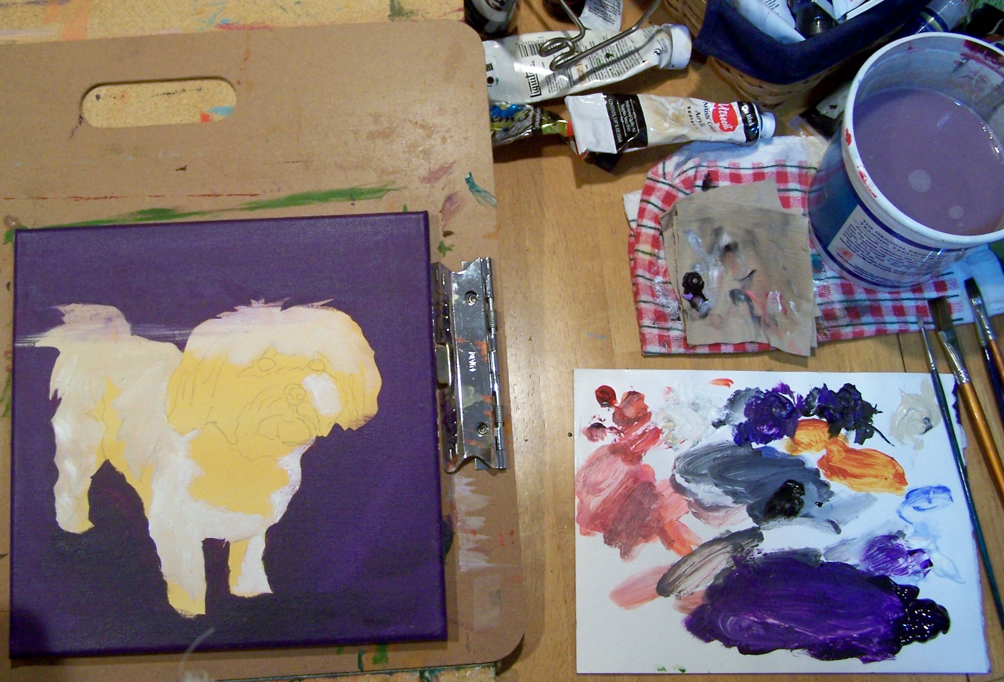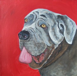Mastiffs are HUGE! I love it when someone comes into the shop with big dogs that I can’t take picture of. These mastiffs are part of the “Bark for the Park” series. Both are acrylic on 12″x12″ canvas. The one of the left is an English Mastiff and the one of the left is a Neapolitan.