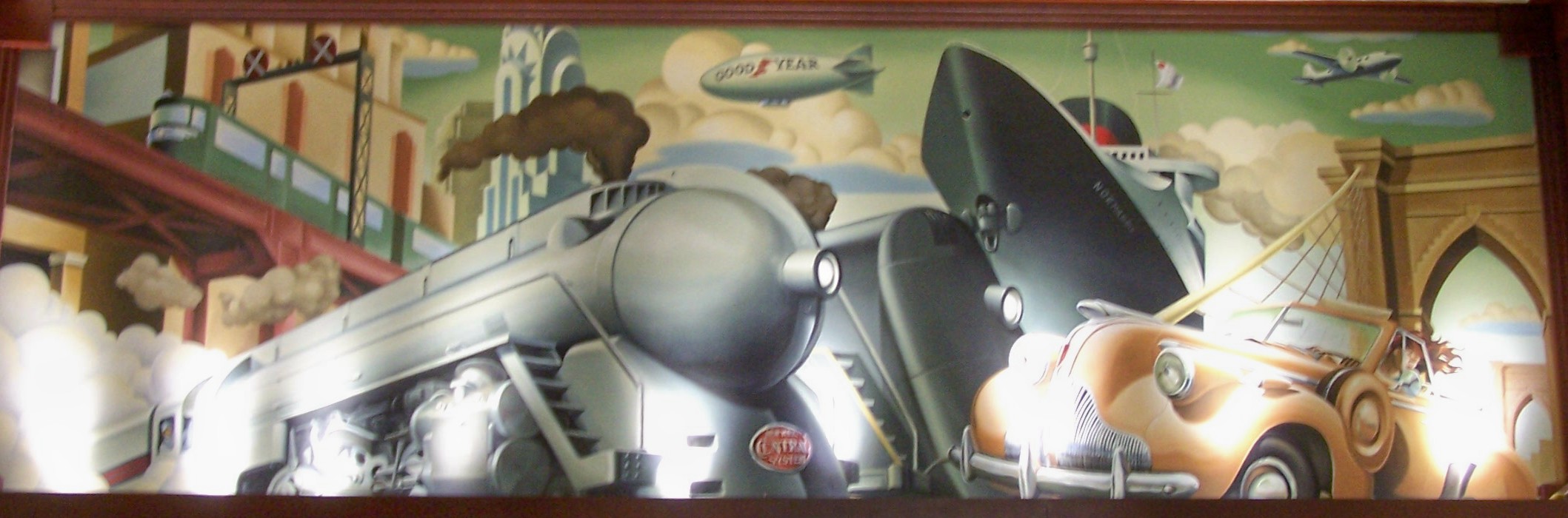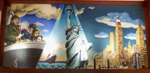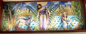 We had a terrific weekend in New York City. Stayed at the Hotel Edison, an art deco style-1930’s hotel. The art was extraordinary. These painted panels circled the lobby waiting area.