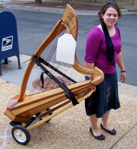 After chatting with her, I found that she was on her way to the gazebo as part of the Celtic Festival on Saturday. She was selling this harp because she had just gotten a new one. Imagine!