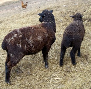Besides the goats and cows, there are sheep. This is Crazy and Baby Crazy.