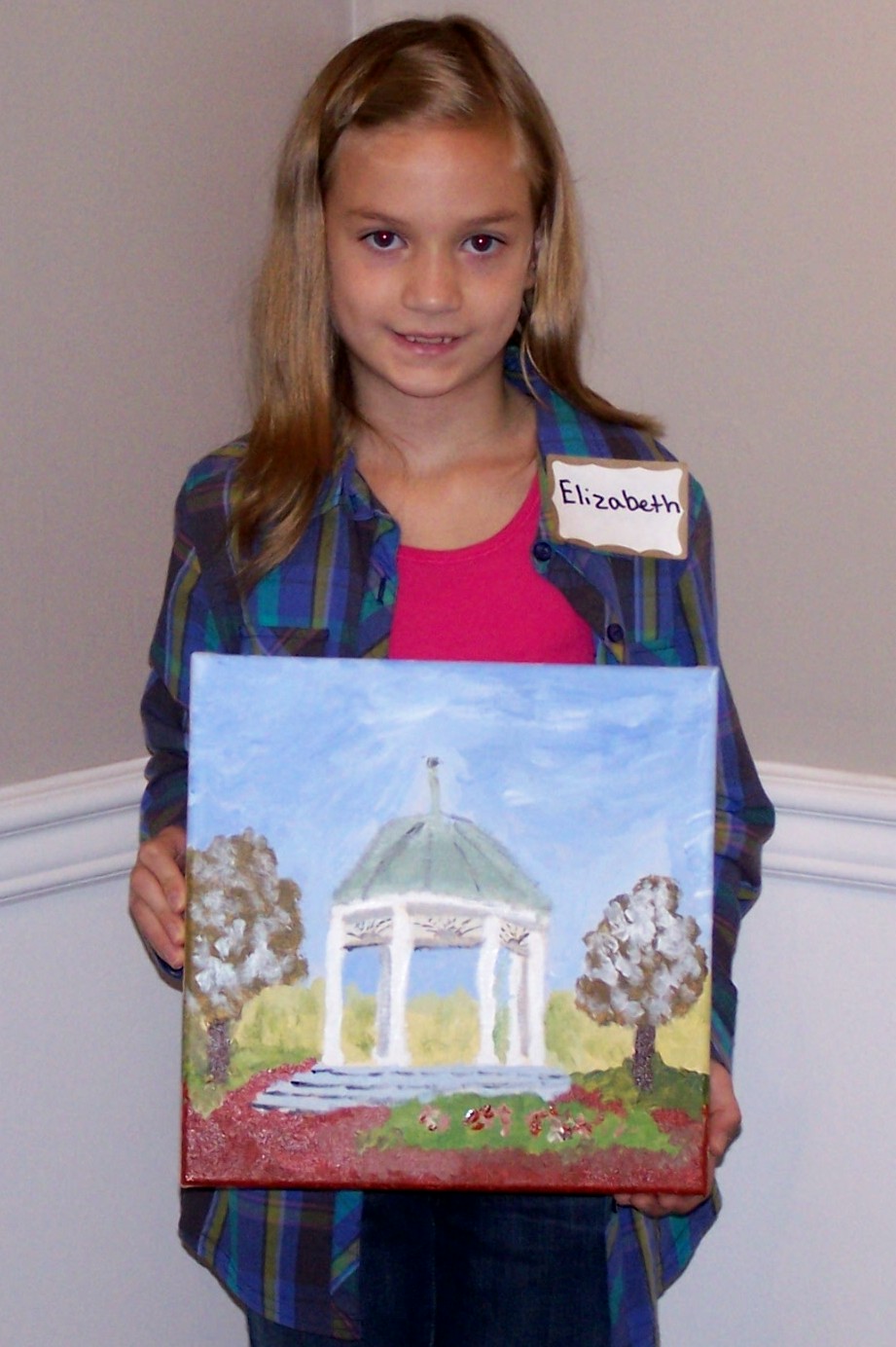 Here is Autumn with her painting of the Historic Marker that is in front of the Middle School along with the reference photo that we used for that painting. She did a fabulous job!