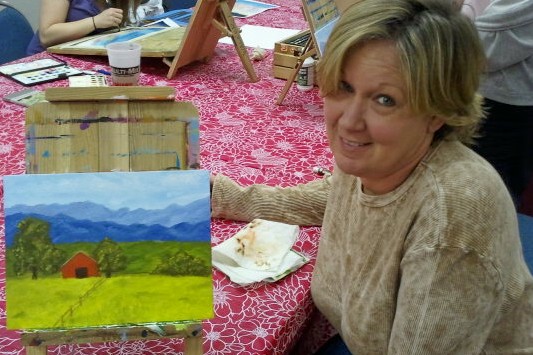 A few weeks ago we started a Wednesday morning art class and I had several new students join me in their quest to learn to paint. And look at the great job they are doing. If you would like to paint remember that we meet on Wednesday mornings at 10:30 or Wednesday or Thursday evenings from 5:30-7 p.m. Just email me if you are interested at kwalker@doubledogdesigns.com. Hope to see your painting soon.