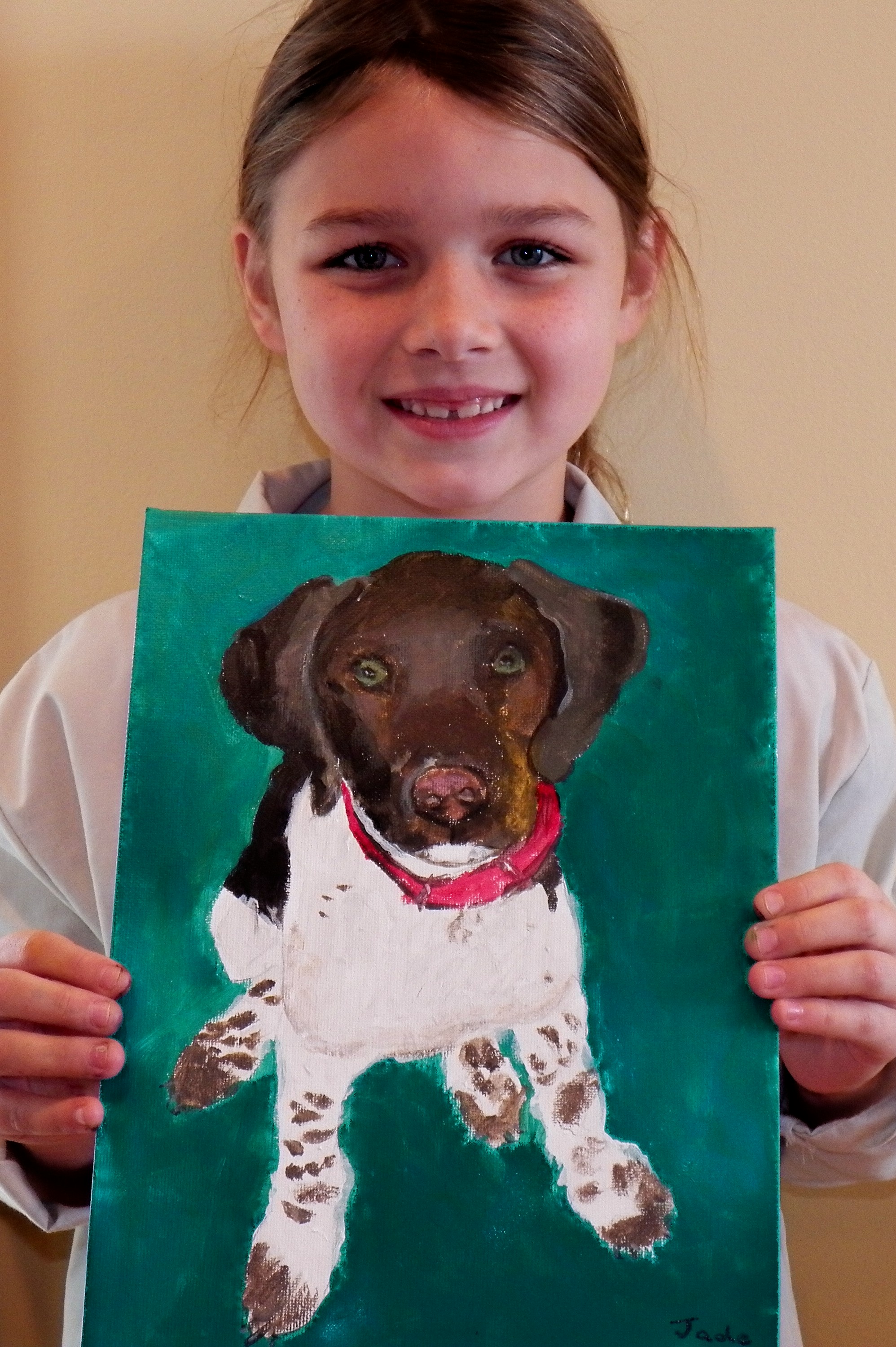 Now meet Jade. Fancy is a member of her family and she wanted to paint a picture of her for her mom. We met yesterday for a lesson and she came up with this terrific painting! Great job!