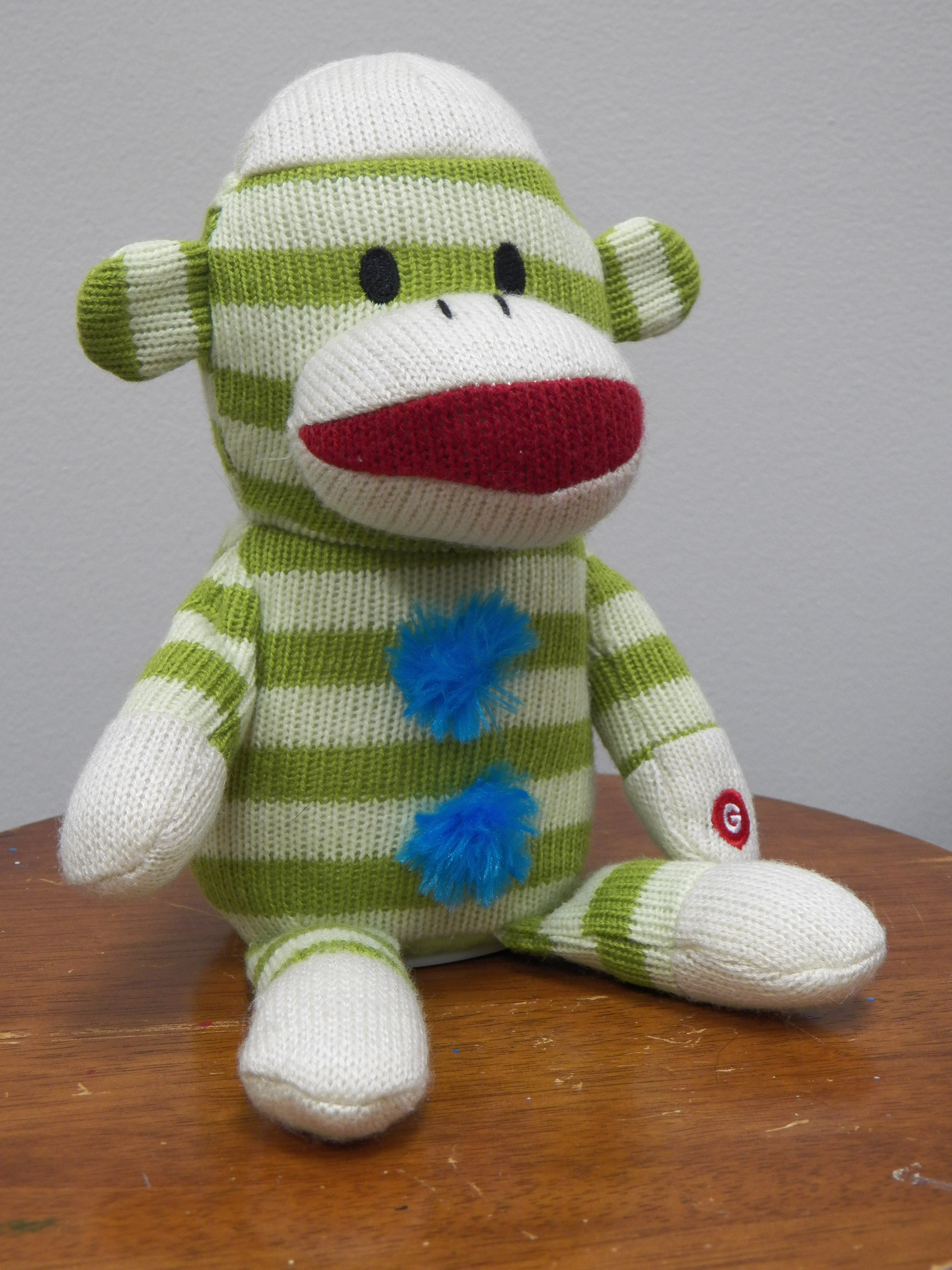 A few weeks ago Mia (on the left in photo) brought in a sock monkey that she had gotten. It sings!