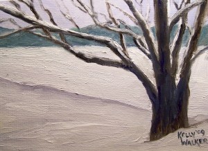 The Tree Out Front, oil on canvas, 6″x8″. Available at Delilah’s, $125.