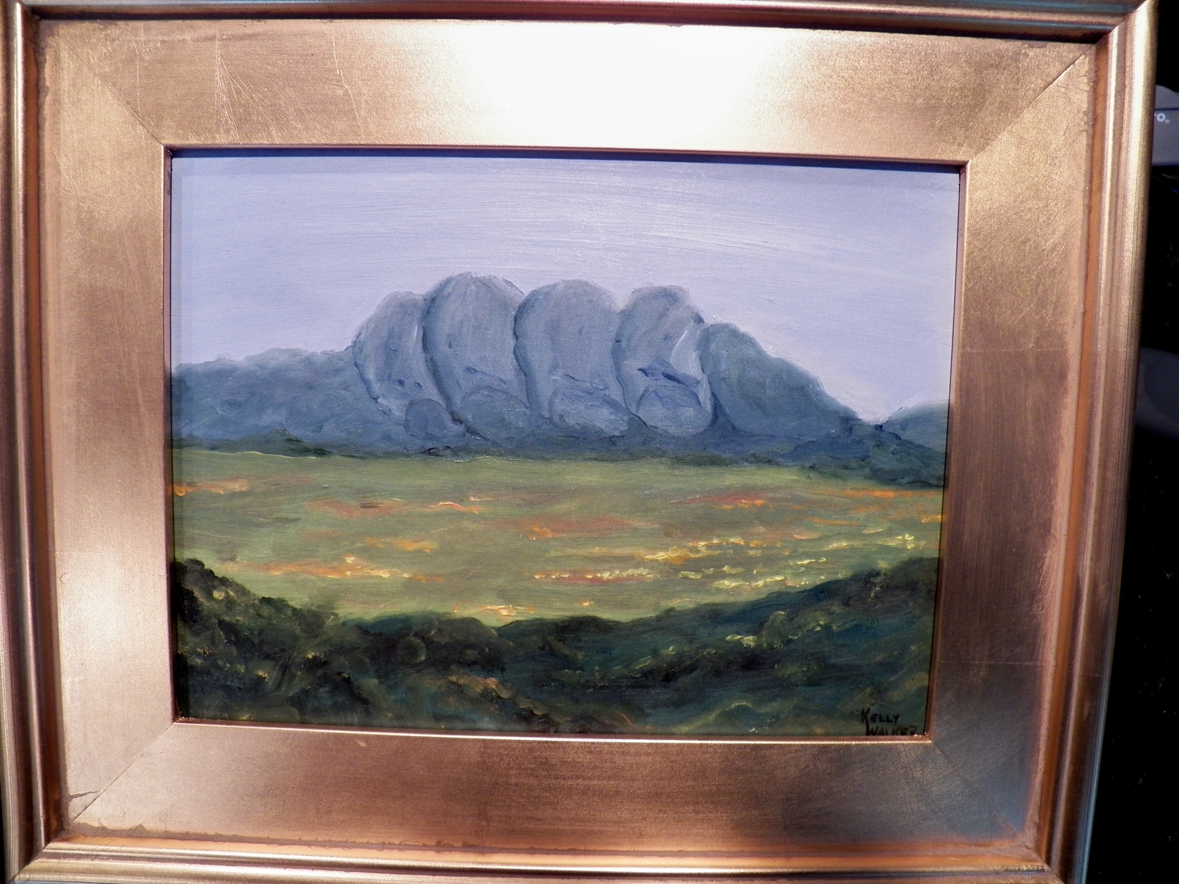 A client approached me several months ago about painting a scene that he had envisioned. There was no photo…just a description of something he had seen in a vision. He described it in detail and basically it was a mountain that resembled a hand. This is what I painted and he loved it.