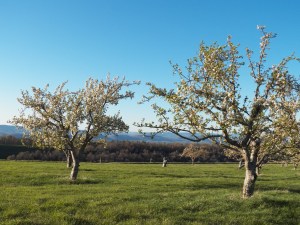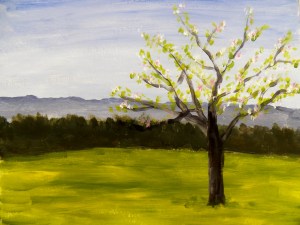 Here is my demo painting and the reference photo. These trees are in an orchard in Purgitsville, WV. A lovely place with a beautiful view.