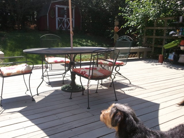 Almost always the best part of painting in plein air for me is the dogs I meet (and their people). Thursday when I was at the Dickey Ridge overlook I met Adobe. Turns out I had run across Adobe before. Six or seven years ago I did a series of dog paintings for a show. The sales from the show went to benefit the Humane Society of Warren County.