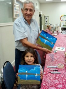 Last night at art class I had the most delightful treat. Olivia, my little 5-year-old private student that you have seen before on my blog, and her grandfather from Florida came to paint together while he was visiting. It was so much fun!!!