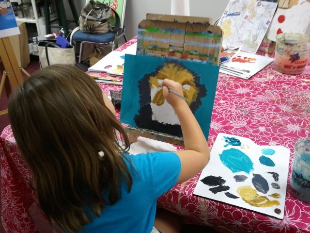 After Helen Frankenthaler, acrylic on gallery wrap canvas, 36″x48″, regular price $595- SALE $295.