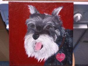 This is Sasha. I painted her for the winner of a drawing that was held at Sassafras Farm in June. Remember when I went over to paint the murals there. Check it out here.