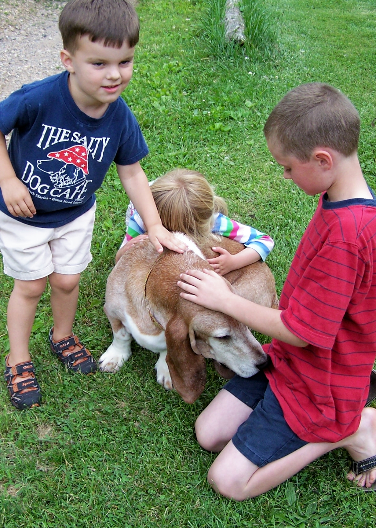 He loved little kids. And they loved him. Anywhere I took him people wanted to pet him, especially kids. They are just drawn to basset for some reason. Probably their funny looks and ears and maybe because they are close to the ground.