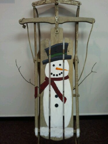 I painted this little snowman on an antique sled for the upcoming Deck the Halls at the Blue Ridge Arts Council. You should come by Friday evening. There will be lots of great trees, wreathes and much more.