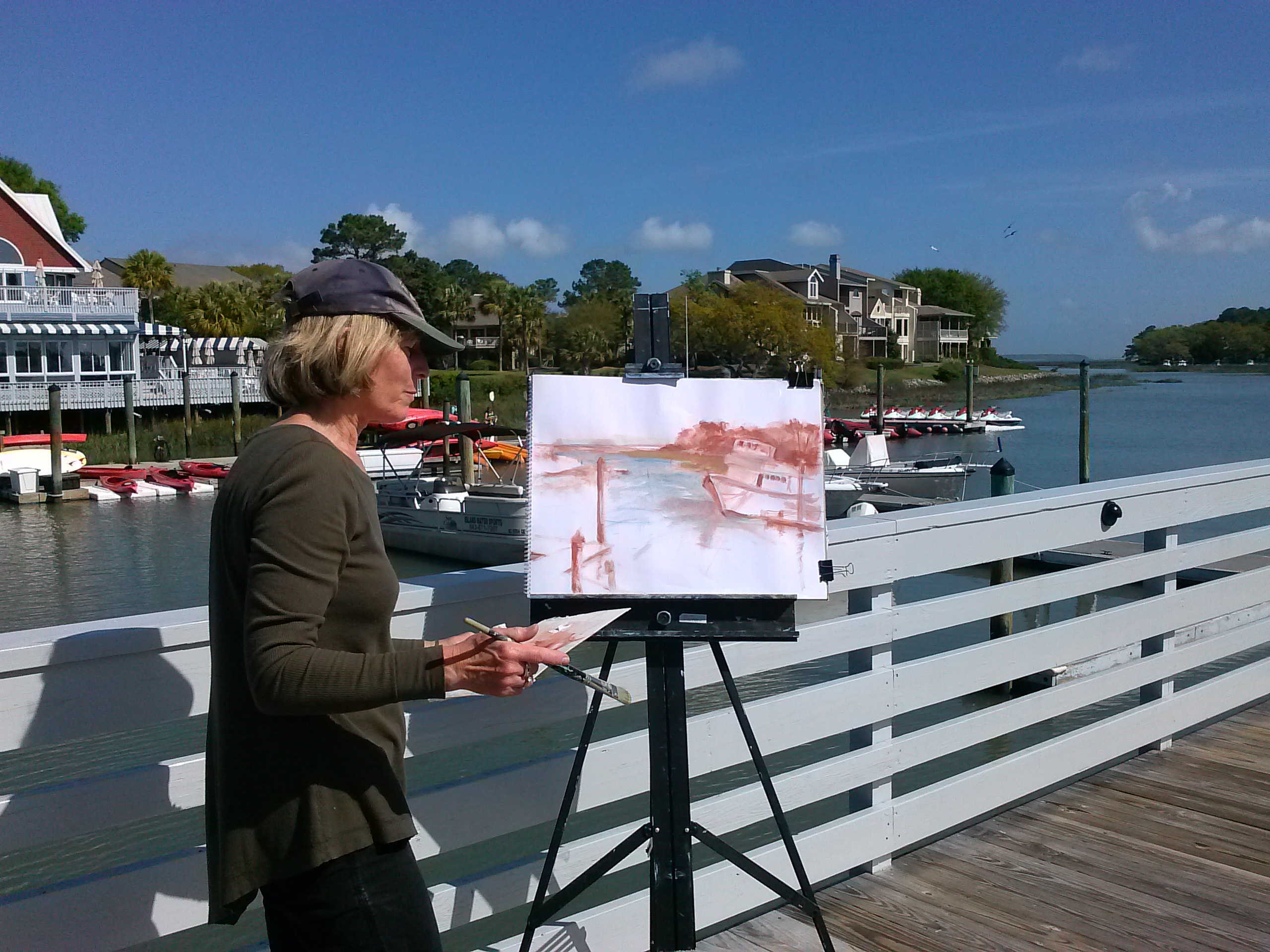 Every artist works differently. I usually start at the top and work in the basic shapes moving toward the subject matter that is closest to the viewer at the end and then go back in to put details. That’s the great thing about painting. There is no right or wrong way as long as the end result makes you happy then you did it just right!