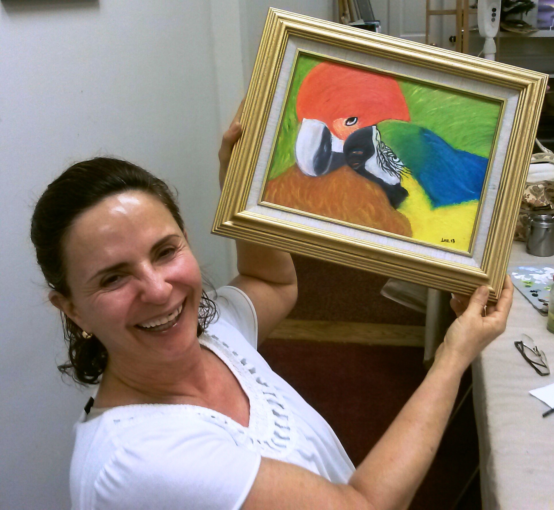 And Luzia, one of my newest students in Thursday class, completed just her second painting – these wonderful parrots. Great job!