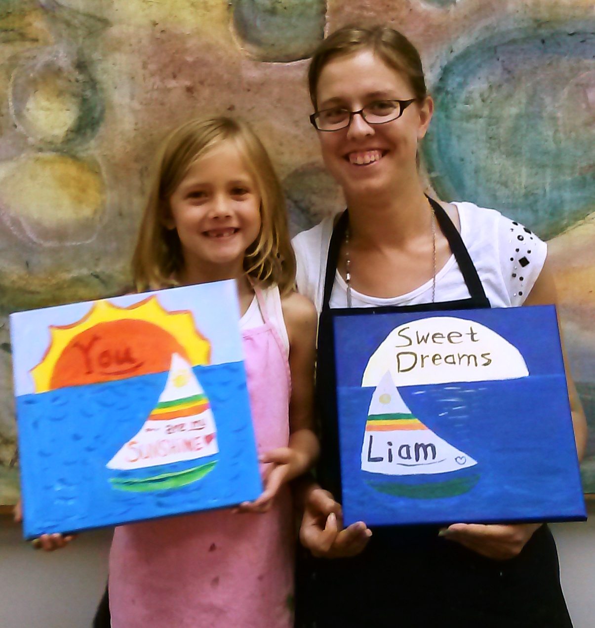 I had a fun private lesson with a mother-daughter this weekend. They created some beautiful art to welcome their new nephew/cousin into the world. Great job Clare and Vivian! You did a fabulous job. I know they will love it.