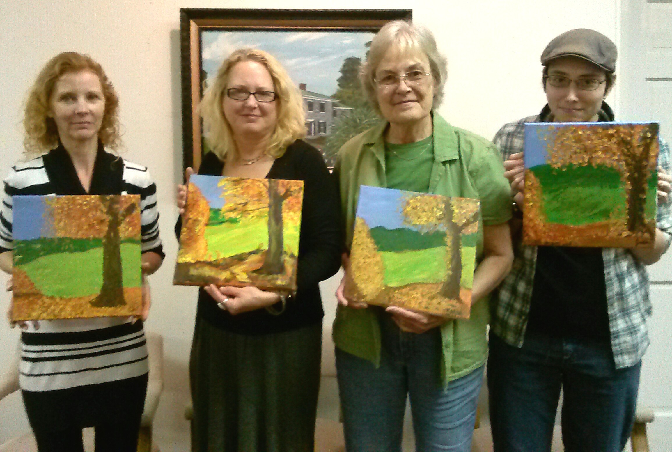 The ladies did a wonderful job with the fall landscape painting at the 1st Saturday Paint Party. What a good time!!!