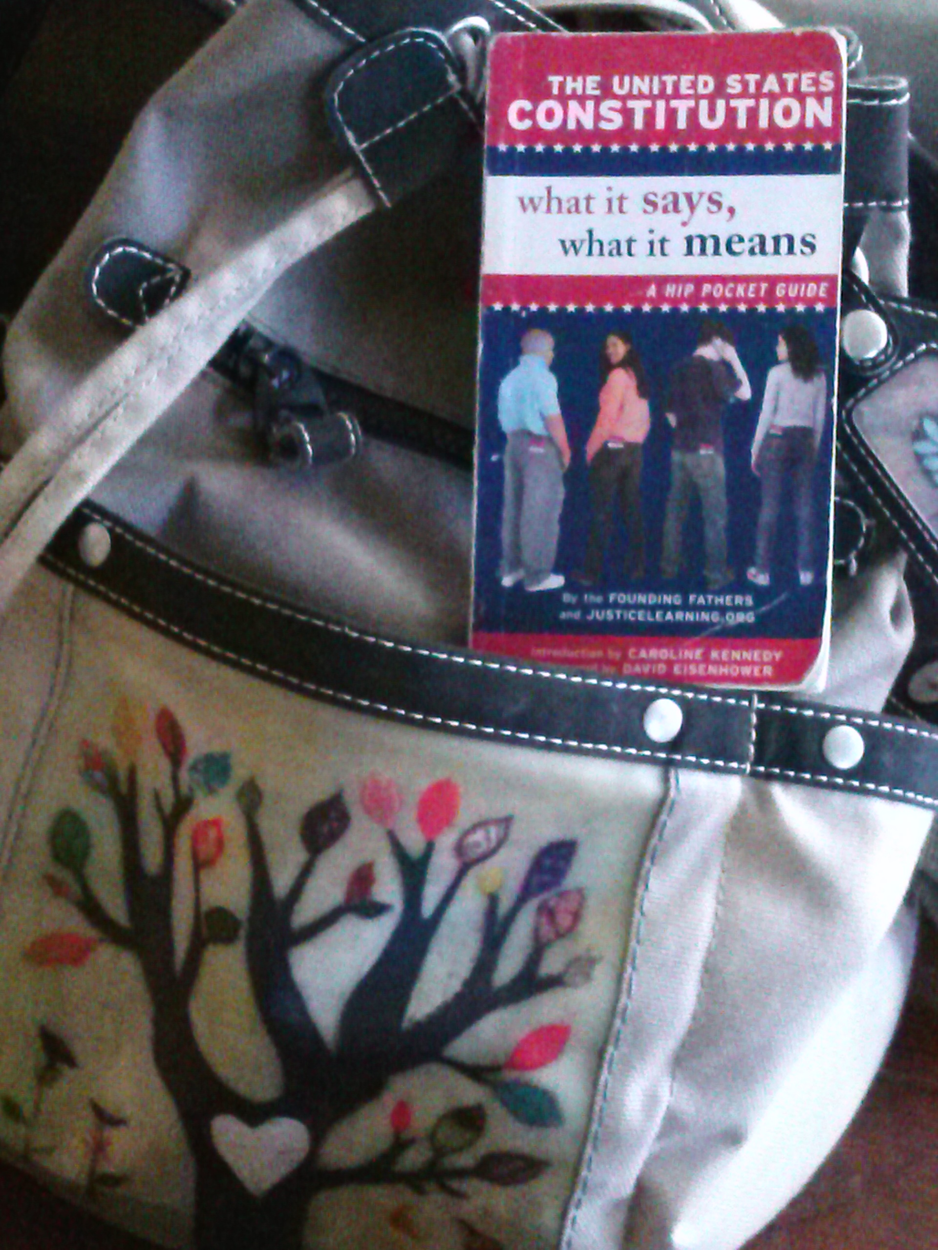 Since I was 16 years old I have carried a copy of the U.S. Constitution in my purse. (I am on my 4th copy as they get worn and fall apart after the wear and tear of 10 or 15 years.) I carry it for several reasons: 1) I like to read it. I don’t think enough people have and 2) it ends many arguments when people start quoting the Constitution and are positive they are correct in their opinion.