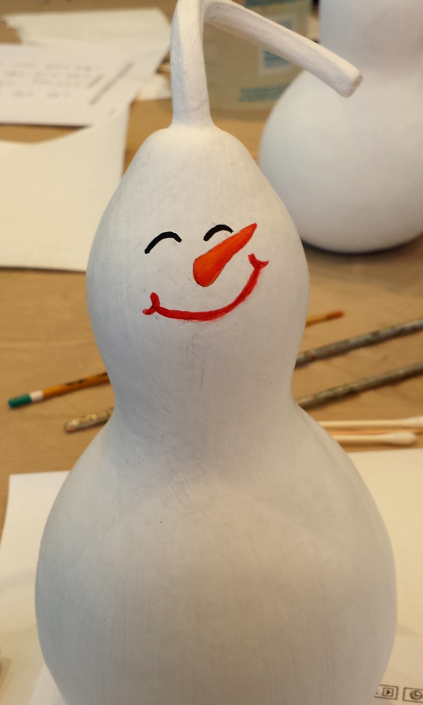What a terrific time we had yesterday at The Studio-A Place for Learning.  Janice and Ruth taught a super fun class on making snowmen from gourds.