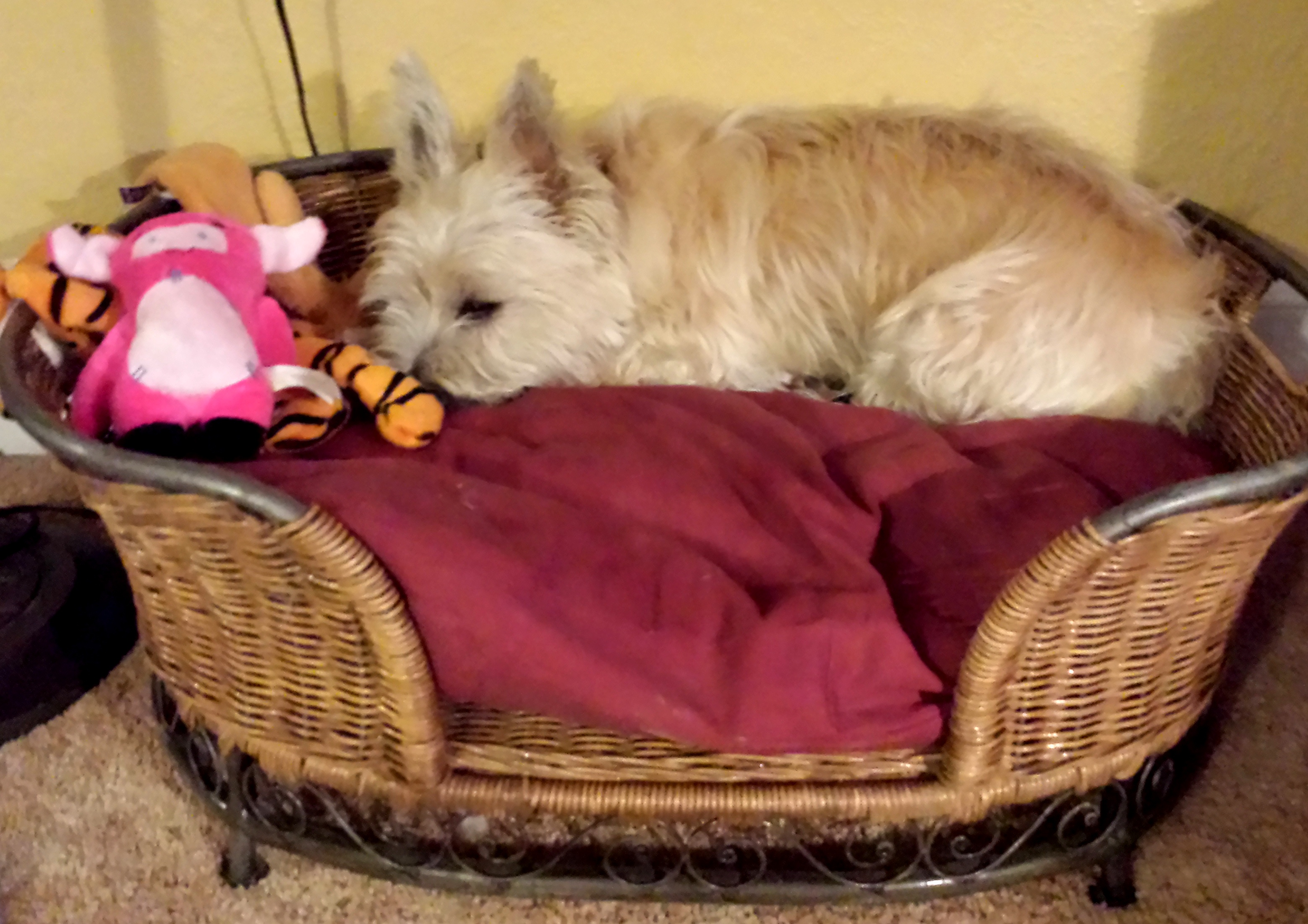 We only had the pleasure of Mamie, a feisty little Cairn terrier, for a little more than 2 years.  She came to us from previous homes who could not keep her.  What a loss for them because she was an amazing little dog.