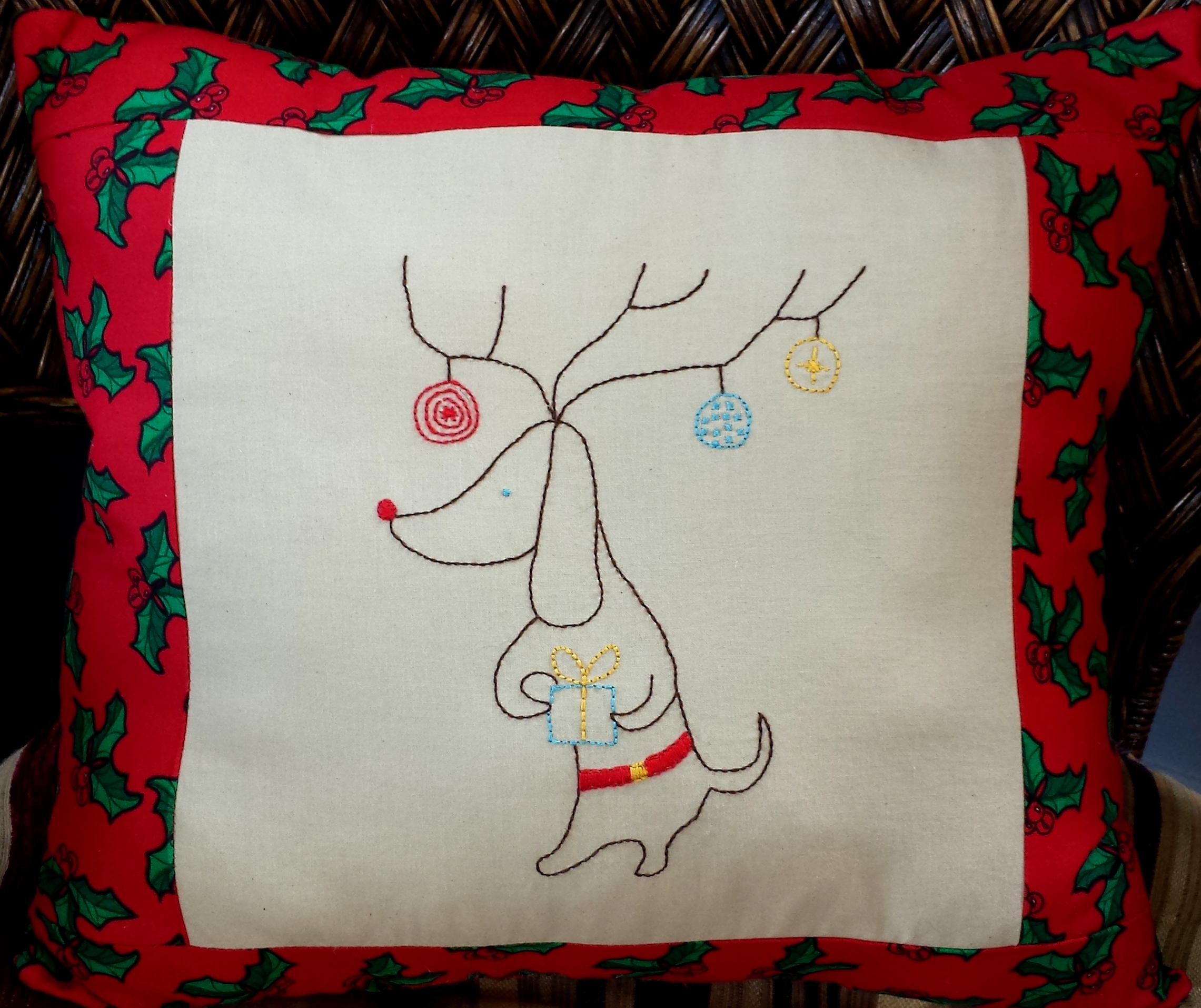 Getting ready for holiday gifts….with these really cute Reindeer Dogs. These are embroidered on muslin and made into pillows. I love these little guys!