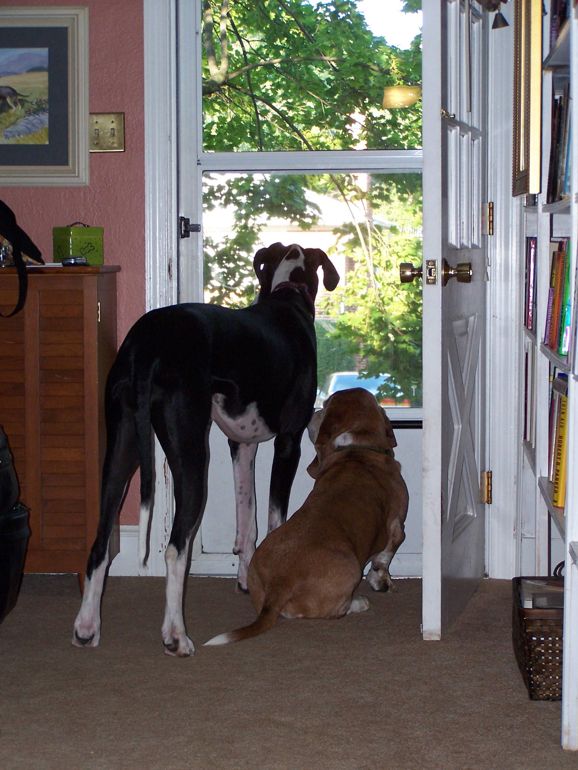 She, of course, was big even as a puppy…she is a Great Dane after all. And she LOVED to play with my basset hound Truman. And they were the funniest pair. She towered over him even as a puppy. But they liked to play together and we loved watching it.