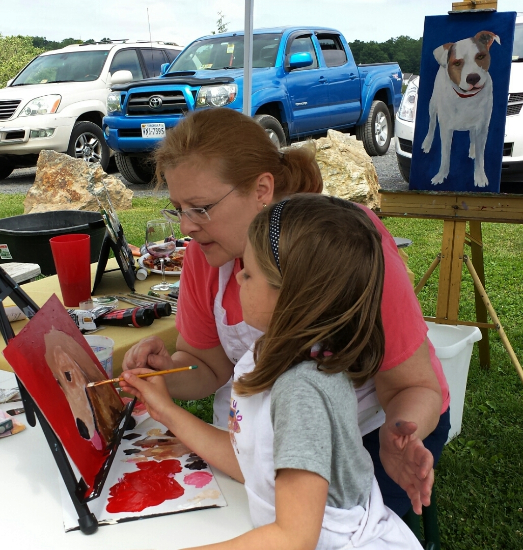 I spent a delightful afternoon at Barrel Oak Winery in Delaplane painting a Pet Portrait for W.A.A.A.G., a non-profit that helps prevent cruelty to animals and helps them find forever homes.