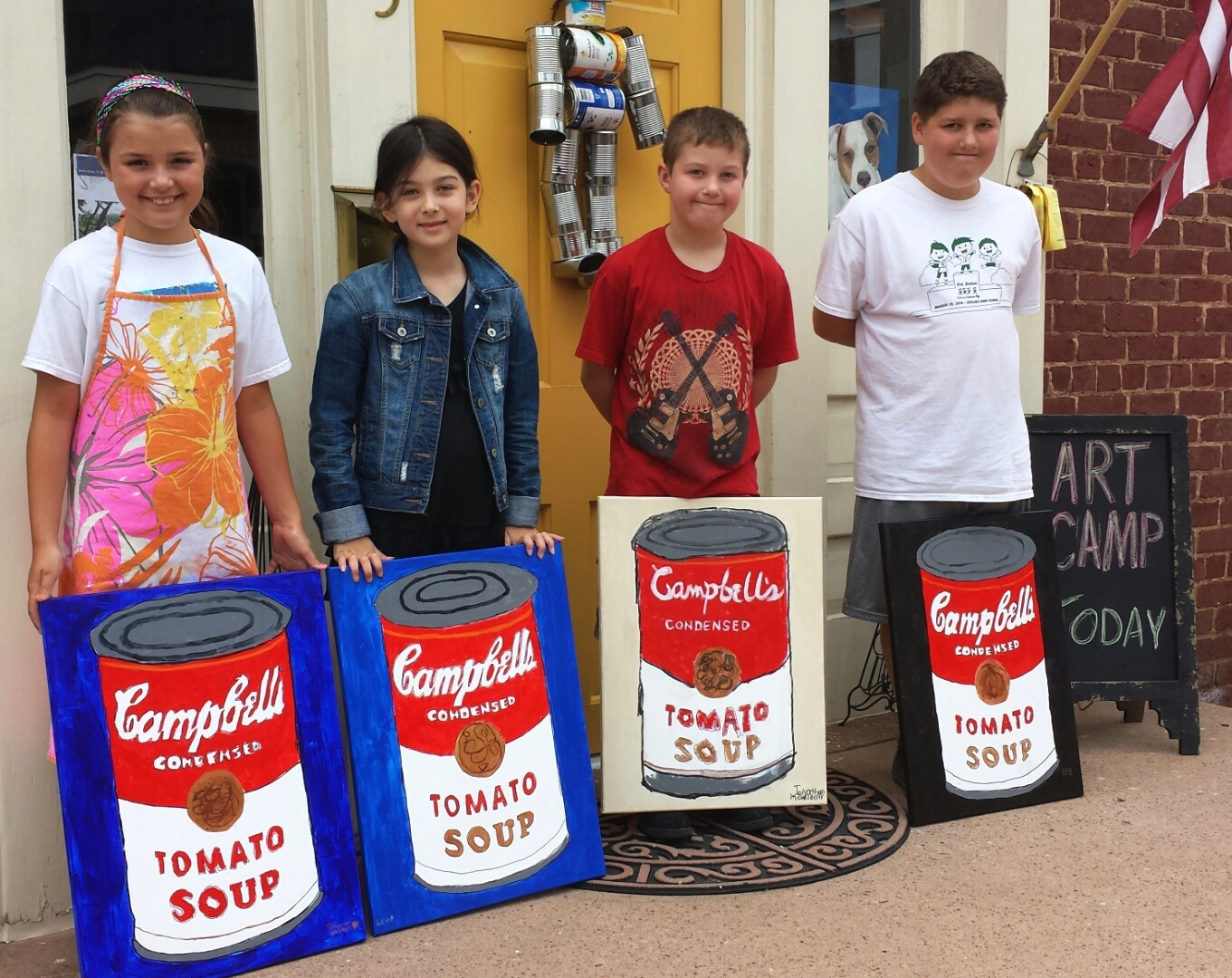Soup anyone?! Didn’t the art campers do a fabulous job painting like Warhol. The Campbell’s soup cans looks terrific! Great job!