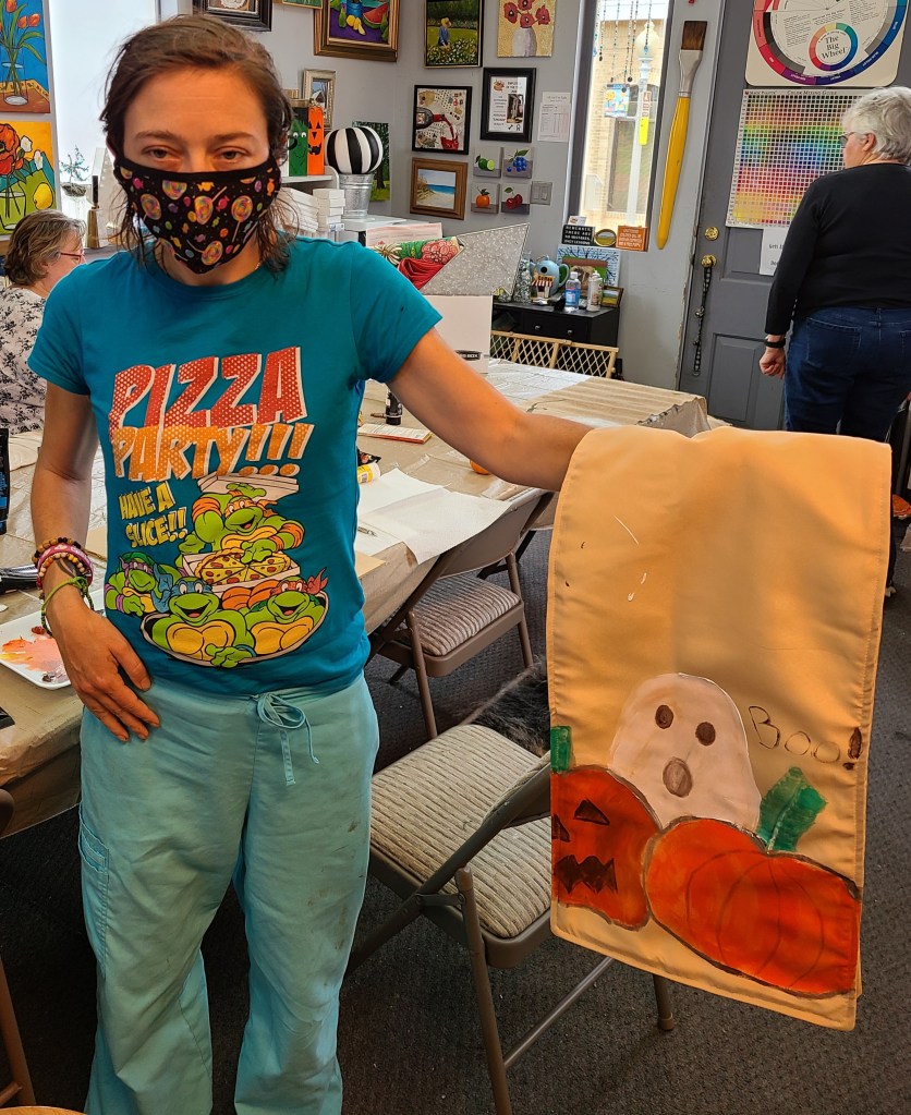 We had quite a day of painting at The Studio yesterday….pumpkin runners. Some chose to paint designs on zipper pouches.
