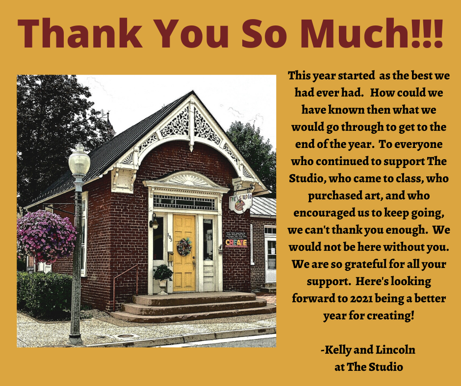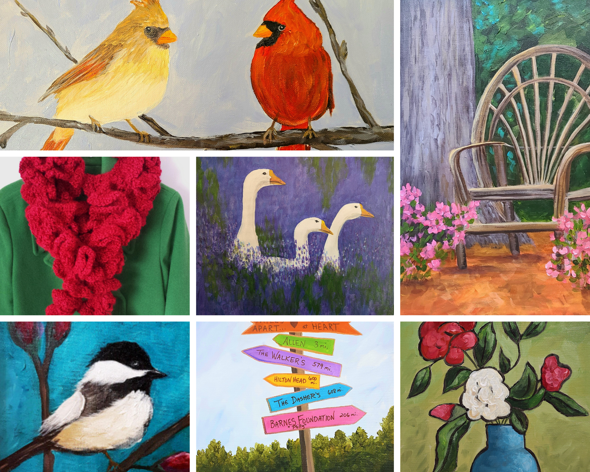 We have so many things coming up….take a look here to see what is available at The Studio for a Paint Party and what is available as a Take-Home Kit. Click here to see it all. We hope you will join us soon at The Studio or come pick up a kit and follow along on a video.