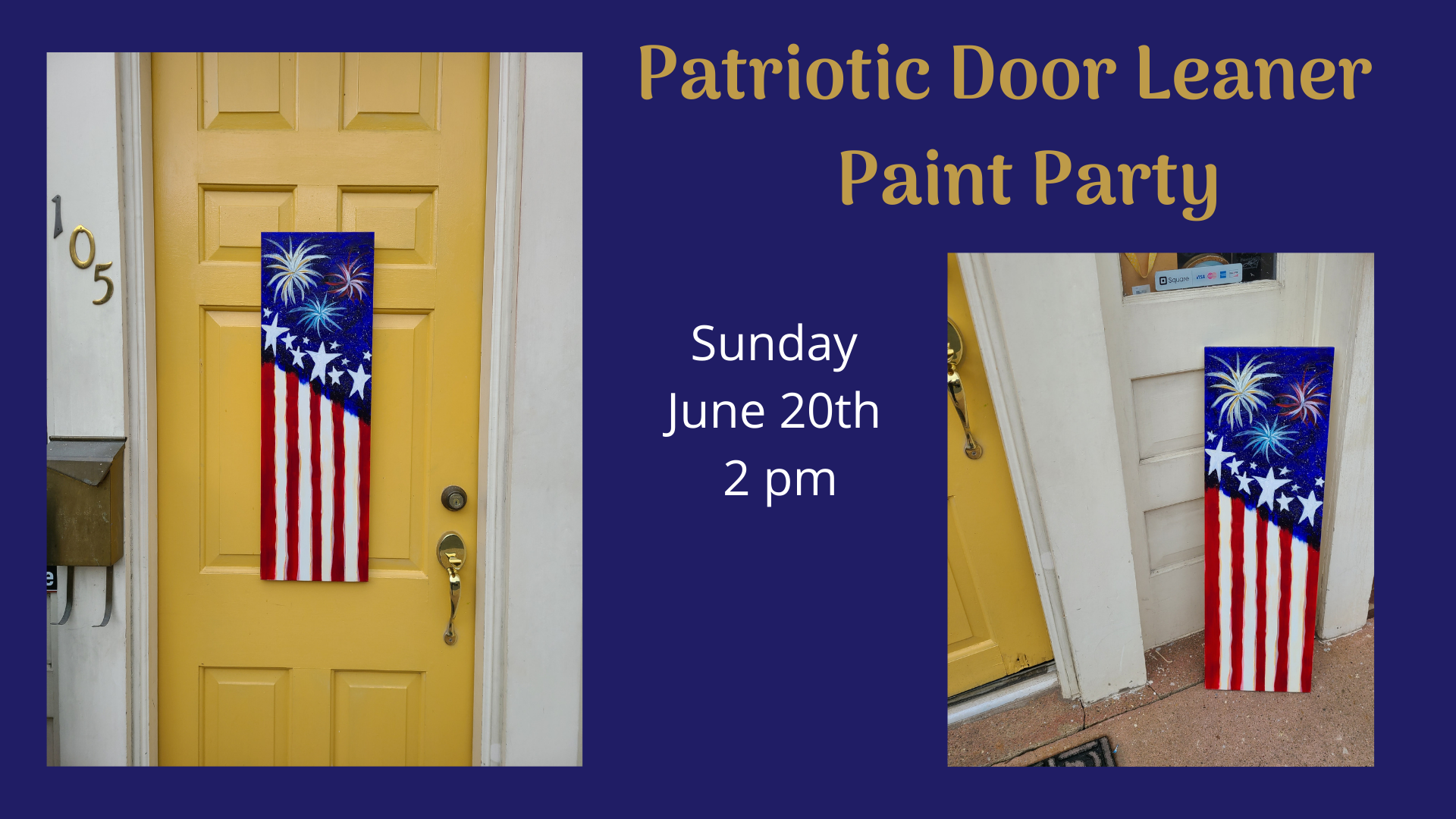 We will paint the Patriotic Door Leaner for our Father’s Day Special. Join in and create this one just in time for the July 4th holiday. You can lean it or hang it. Either works great! And you can come on your own to paint or invite your Dad and get a special fee for two. Just choose your option when you register by clicking here. Space is limited on this one because of the size of the boards so get in early.