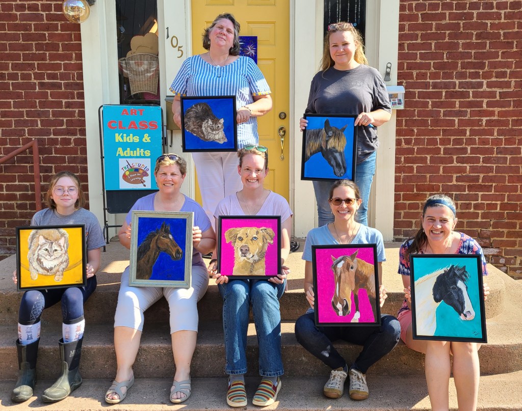 Yesterday friends who ride together visited to paint their horses and pets. It was a fun afternoon with lots of laughs and beautiful art. Nice work everyone!
