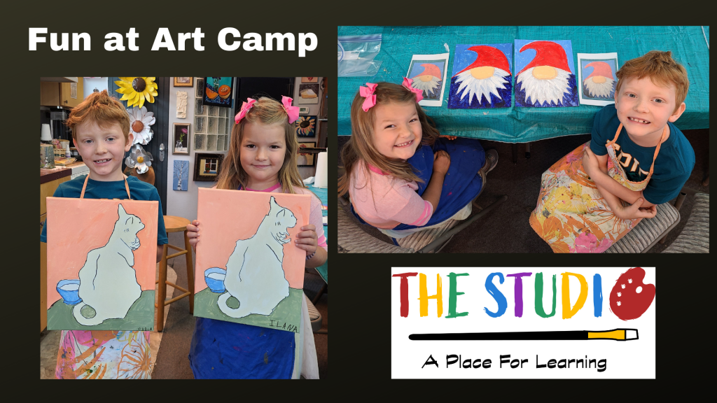 Kids painted a cat as well as creating a “Gnome puzzle” at Art Camp yesterday. So good! Register your young painter for the upcoming camps now by clicking here.