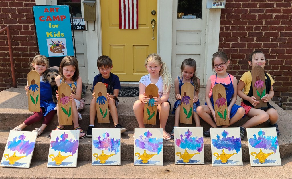 Our young artists painted Aladdin’s Lamp yesterday morning at Art Camp along with a little bonus painting….a little flower on a wood shingle. They did a great job painting these wonderful pieces. Nice work young painters!